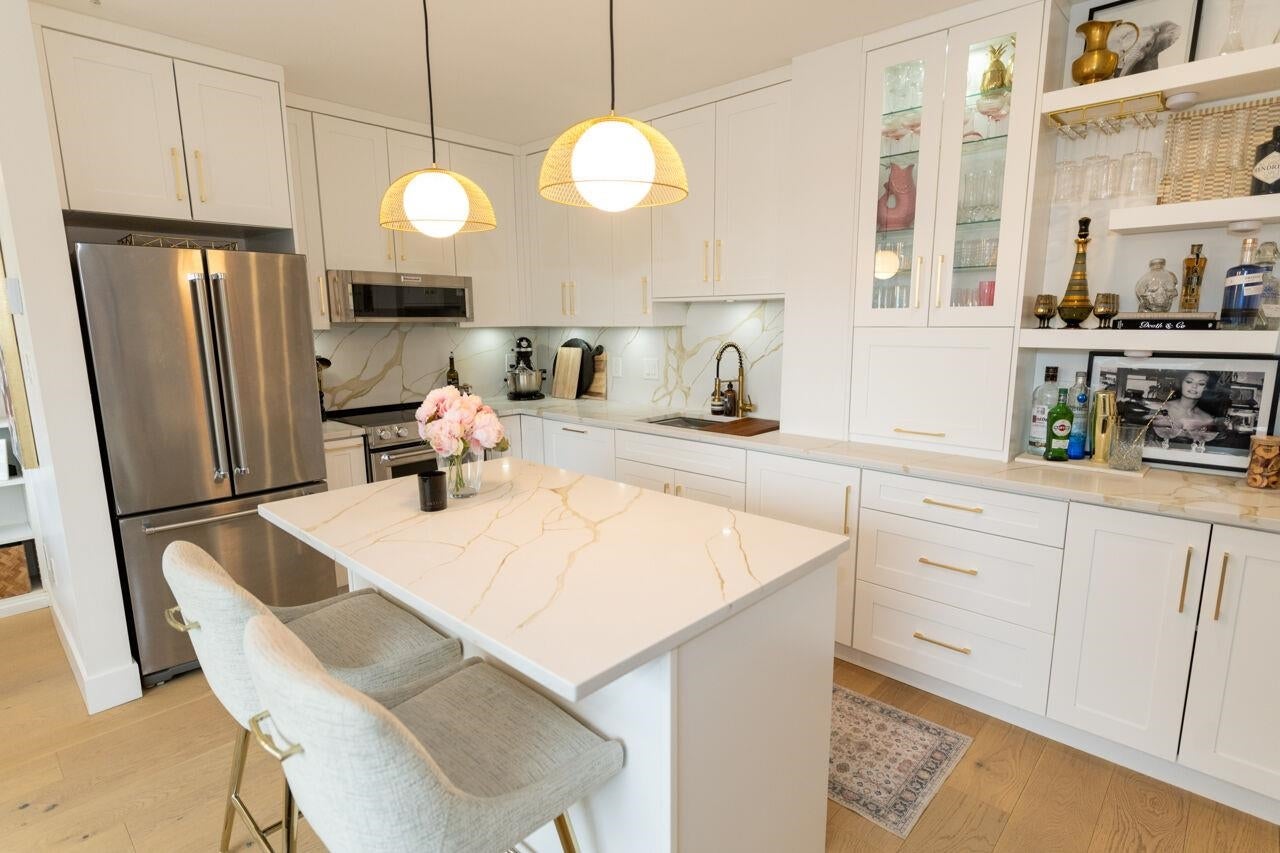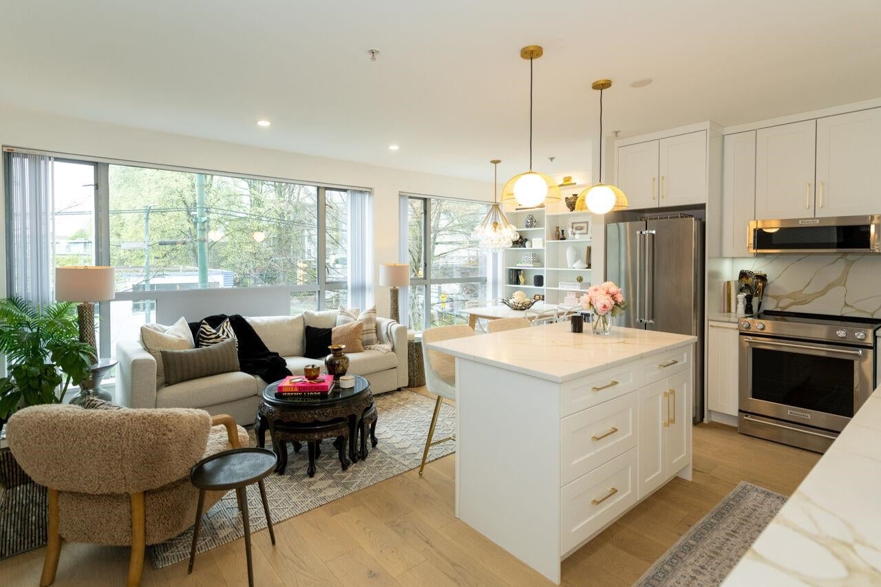 Arbutus Walk Dream Home! This boutique building has it all, concrete construction, great strata and highly sought after location with only 23 homes. Fully and professionally renovated home with top-of-the-line finishes & gorgeous upgrades. New paint, engineered hardwood flooring, custom lighting, a chef's kitchen w/island, custom closets & shelving, as well as stunning fixturing thru-out. A large Primary Bedroom with luxurious cheater bath, heated floors and imported Italian tilework. Bright open living & dining room. In the heart of Kits, just steps to the new Arbutus Skytrain Station, beaches, parks, best schools, restaurants & shopping. Pet and rental friendly. One secure parking included and storage lockers rented from strata. Open House Sat & Sun, April 25th & 26th, 2pm to 4pm.